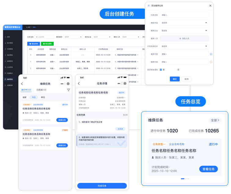 后台具备便捷的维保任务创建功能,支持同时指派给多名维保人员,实现任务的精准分配与合理调度,优化人力资源利用,提升工作效率。